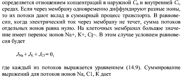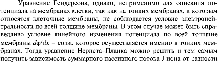 Пассивный ионный транспорт. Уравнение Нернста-Планка. Два подхода к решению уравнения Нернста-Планка: теория Гендерсона и теория Гольдмана-Ходжкина-Хаксли (приближение постоянного поля). Уравнение Ходжкина-Хаксли для трансмембранного потенциала при наличии трёх типов ионов.