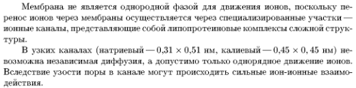 Как видно из уравнения (1), энергия перехода иона в мембрану снижается с увеличением радиуса иона. Поэтому крупные органические ионы проникают через мембрану легче, чем маленькие ионы щелочных металлов.