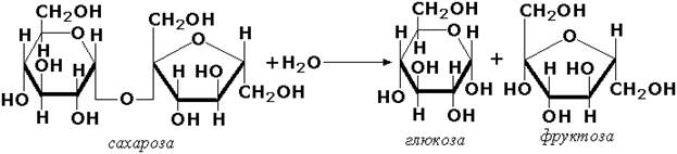 Гидролазы, действующие на гликозидные связи (гликозидазы) ускоряют реакции гидролиза олиго- и полисахаридов, а также других соединений, содержащих моносахаридные остатки (например, нуклеозидов). Характерным представителем является сахараза (β-D-фруктофуранозид-фруктогидролаза, КФ 3.2.1.26). катализирующая расщепление сахарозы: