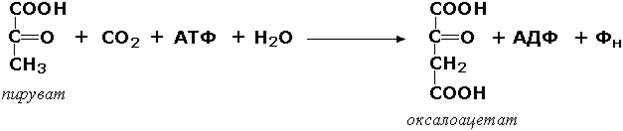 Лигазы, образующие связи углерод-углерод. Из этих ферментов наиболее изучены карбоксилазы, обеспечивающие карбоксилирование ряда соединений, в результате чего происходит удлиннение углеродных цепей. Важнейшим представителем данного класса является пируваткарбоксилаза (пируват:СО2-лигаза (АДФ), КФ 6.4.1.1), ускоряющая реакцию образования оксалоацетата - ключевого соединения цикла трикарбоновых кислот и биосинтеза углеводов: