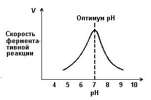 Рисунок 2.6. Зависимость скорости ферментативной реакции от рН среды.
