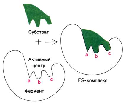 Рисунок 3.5. Взаимодействие субстрата с ферментом согласно модели жёсткого соответствия (Л.Страйер, 1984).