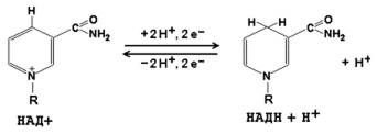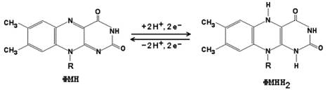 Рисунок 8.3. Взаимопревращения окисленных и восстановленных форм промежуточных переносчиков электронов и протонов.