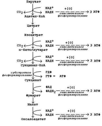 Рисунок 8.5. Расчёт энергетического баланса реакций окислительного декарбоксилирования пирувата и цикла Кребса.