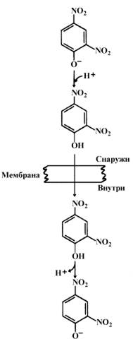 Рисунок 8.6. Механизм действия 2,4-динитрофенола.