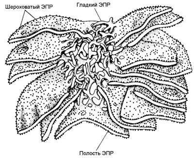 Рисунок 8.8. Структура эндоплазматического ретикулума (источник: Альбертс Б. и соавт., Молекулярная биология клетки, 1994).