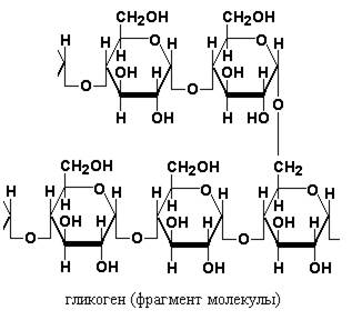 9.2.4. Избыток глюкозы может откладываться в клетках в виде гликогена – резервного полисахарида с разветвлённой структурой.