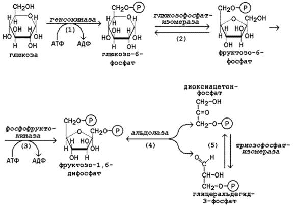 Рисунок 9.3. Реакции первой стадии гликолиза.