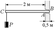 В6. Чему равны силы, действующие на подшипники А и В (рис. 26.12), если масса вала 10 кг, масса шкива 20 кг, |АВ| = 1,0 м, |ВС| = 0,40 м?