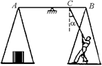 С6.На правой чашке больших рычажных весов стоит человек, который уравновешен грузом, положенным на другую чашку. К середине правого плеча весов в точке С привязана веревка (рис. 26.21). Нарушится ли равновесие, если человек, стоящий на чашке весов, начнет тянуть за веревку с силой F < Р под углом a к вертикали? Вес человека Р, длина коромысла АВ = l. Весы равноплечие. Весом веревки пренебречь.