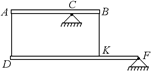 С7. Невесомый стержень АВ шарнирно укреплен в точке С и связан двумя нитями с однородным стержнем DF, шарнирно укрепленным в точке F (рис. 26.22). АС = 2а, СВ = a, DF = 4а, вес стержня DF равен Р. Найти натяжения нитей.