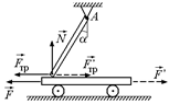 С21. Стержень АВ, шарнирно закрепленный в точке А, опирается концом В на платформу (рис. 26.32). Какую минимальную силу F надо приложить, чтобы сдвинуть платформу с места? Масса стержня т, коэффициент трения стержня о платформу k и угол, образуемый стержнем с вертикалью, равен a. Трением качения колес платформы и трением в осях пренебречь.