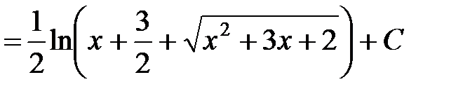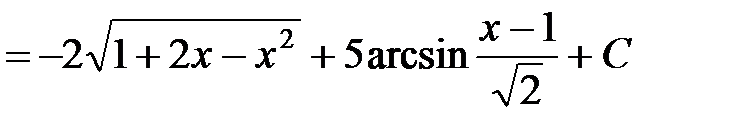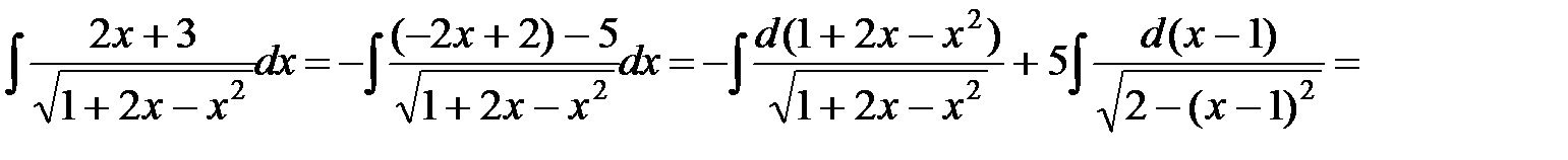 г) Разобьем данный интеграл на сумму двух интегралов (в первом в числителе образуем производную от подкоренного выражения, а во втором выделим полный квадрат в подкоренном выражении):