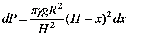 ►Вычислим вес элементарного слоя жидкости, находящейся на глубине х.