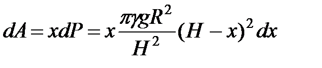 Элементарная работа, затраченная на поднятие этого слоя жидкости на высоту х, равна