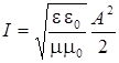 Здесь e и m – относительные электрическая и магнитная проницаемости среды; e0 и m0 – электрическая и магнитная постоянные; А – амплитуда напряженности электрического поля. Единицей измерения I является Вт/м2. Если умножить уравнение (7) на величину