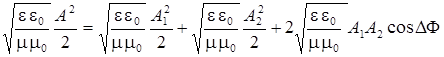 Е = Е1 + Е2 = A1 cos Ф1 + A2 cos Ф2, (3)