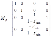 которая носит название перспективного преобразования. После применения матрицы Mp нормированный видимый объем становится прямоугольным параллелепипедом, что позволяет перейти от центральной перспективной к параллельной проекции. Легко проверить, что, например,