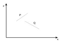 3. P полностью расположен с той стороны от плоскости Q, которая дальше от точки зрения (этот тест дает положительный ответ как показано на рис. 36 а).