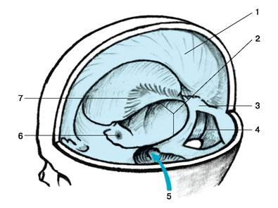 7 – намет мозжечка, tentorium cerebelli.