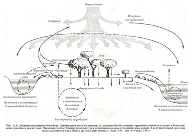Имеет место вынос остаточных количеств пестицидов за пределы обрабатываемой территории рис. 11.6.