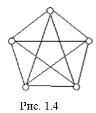 Полный граф –граф, у которого все вершины попарно смежные (рис. 1.4.). Так как для полного графа p(x1)= p(x2)= …= p(xn)=n-1, то число ребер в таком графе