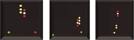 (i) три круговых огня, расположенных по вертикали на наиболее видном месте: верхний и нижний из этих огней должны быть красными, а средний огонь -