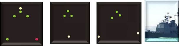 предписанным для судна на якоре Правилом 30, соответственно должно выставлять три зеленых круговых огня или три шара. Один из этих огней или знаков должен выставляться вблизи топа фок-мачты, а два других - на ноках фока- рея. Эти огни или знаки указывают, что другому судну опасно приближаться к судну, занятому работами по устранению минной опасности, на расстояние менее 1000 м.