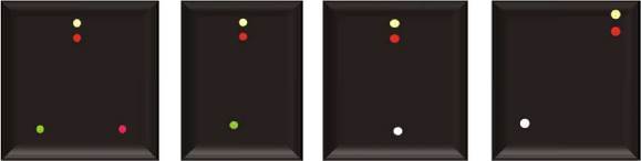 (i)три круговых огня, расположенных по вертикальной линии на наиболее видном месте. Верхний и нижний из этих огней должны быть красными, а средний - белым;