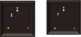 (ii) два зеленых круговых огня или два ромба, расположенных по вертикальной линии,- для указания стороны с которой может пройти другое судно;