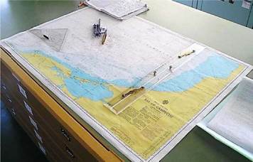 Морская навигационная карта - карта, предназначенная для обеспечения задач судовождения. Картой называется изображение на плоскости части или всей земной поверхности. Навигационные карты применяются для графического учета движения судна во время плавания, на ней прокладываются курсы и пеленги на ориентиры (рис. 3.21). Чтобы судно могло осуществить переход из одного пункта в другой, необходимо выбрать кратчайший и безопасный путь, для этого делается подборка карт по маршруту следования. Требования к морской навигационной карте: