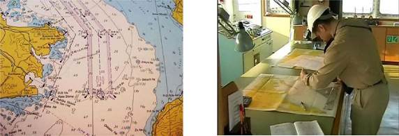 После предварительного знакомства с картой подробно просматривают район, в котором предстоит плавать, чтобы во всех подробностях изучить навигационную обстановку - глубины, опасности и систему их ограждения, береговую черту, расположение маяков и знаков. Для изображения на карте состояния и особенностей поверхности моря его дна и побережья применяется система условных обозначений.