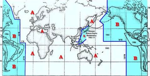 Рис. 3.22. Деление Мирового океана на регионы А и В