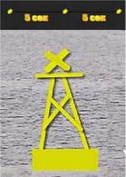5. Знаки специального назначения применяются для обозначения или ограждения специальных районов или объектов, например, мест прокладки кабелей и др. Знаки окрашены в желтый цвет (рис.3.34). Топовые фигуры — косой крест желтого цвета. Светящий буй имеет желтый огонь, характер огня — Пр 5с.