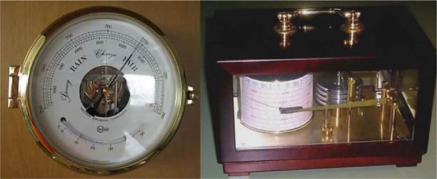 Рис. 4.12. Приборы для измерения атмосферного давления: барометр-анероид и барограф