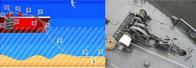Рис. 6.9. Состав якорного устройства судна: