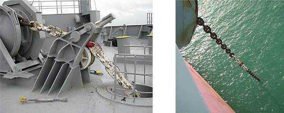 — проверяют ленточный стопор, после чего отдают все дополнительные стопоры, наложенные на якорную цепь;