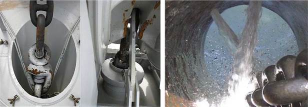 — проверяют состояние якорной цепи в цепном ящике (цепь не должна быть перекручена) и убеждаются в отсутствии людей в цепном ящике;
