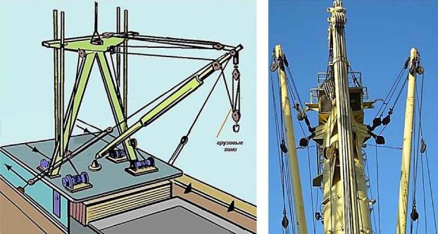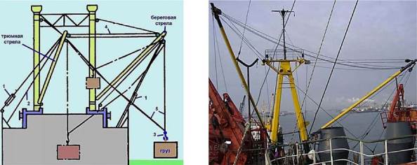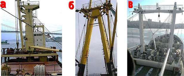 — мачты или грузовые колонны, которые служат опорой для стрел (на некоторых судах опорой может являться лобовая переборка надстройки);