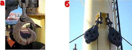 Рис. 6.65. а - грузовой гак; б - поворотные оттяжки