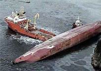 - при затоплении отсека судно частично теряет остойчивость из-за наличия большой площади свободной поверхности жидкого груза. Если и в смежных отсеках окажется свободно перемещающаяся вода, то судно может полностью потерять остойчивость и перевернуться.
