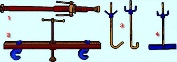 Рис. 7.6. Аварийный инвентарь: 1 - аварийный упор; 2 - аварийная струбцина; 3 — крючковые болты; 4 - болт с поворотной головкой
