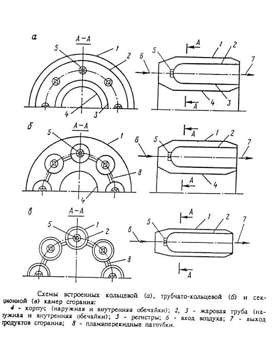 Подрисуночные надписи на всех приводимых схемах камер сгорания позволяют относительно легко анализировать их работы.