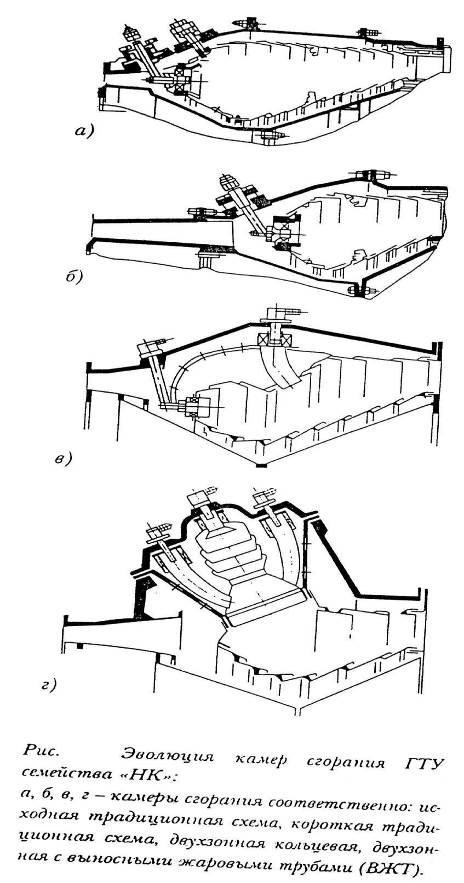 Эволюция камер сгорания ГТУ семейства «НК» представлена на Рис. 5.3.