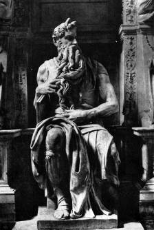 илл.167 Микеланджело. Моисей. Статуя для гробницы папы Юлия II в Риме. Мрамор. 1515-1516 гг. Рим, церковь Сан Пьетро ин Винколи.