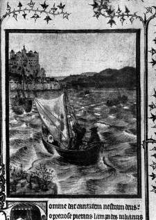 илл.244б Морское плавание св. Юлиана. Миниатюра Туринско-Миланского часослова. 1420-е гг. Не сохранилась; прежде -Турин, Музей.