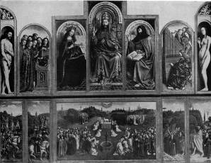 Нетрудно увидеть в Гентском алтаре принципы миниатюр 20-х гг. 15 в., но в полиптихе они возведены в законченную художественную, мировоззренческую систему.
