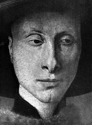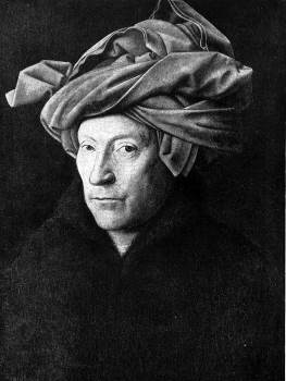В другом портрете ван Эйка— портрете человека в тюрбане, исполненном в 1433 г. (Лондон, Национальная галлерея), выражение лица становится более активным. Портретируемый приближен к краю картины, его глаза обращены к нам (хотя все же нельзя сказать, что он смотрит на вас). Взгяд его, более пристальный, чем у Тимофея, обладает некоторым привкусом горечи, то есть его эмоциональная окрашенность более конкретна.