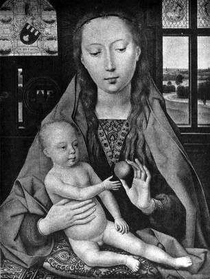 илл.270 Мемлинг. Мария с младенцем. Левая створка диптиха Ньювенхове. 1487 г. Брюгге, музей Мемлинга.