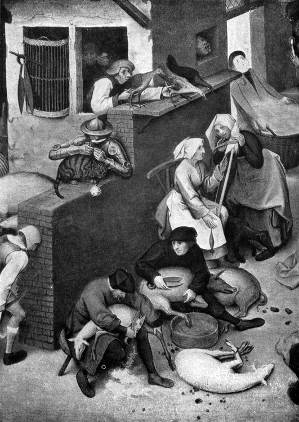 илл.288 Питер Брейгель. Фламандские пословицы. Фрагмент. 1559 г. Берлин.